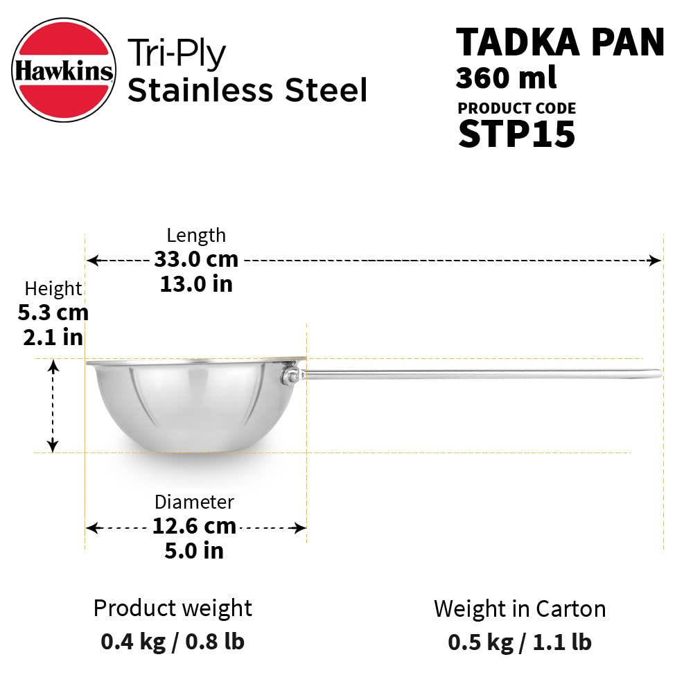 Hawkins 1.5 Cup Tadka Pan, 360 ml Triply Stainless Steel Pan, Silver (STP15)