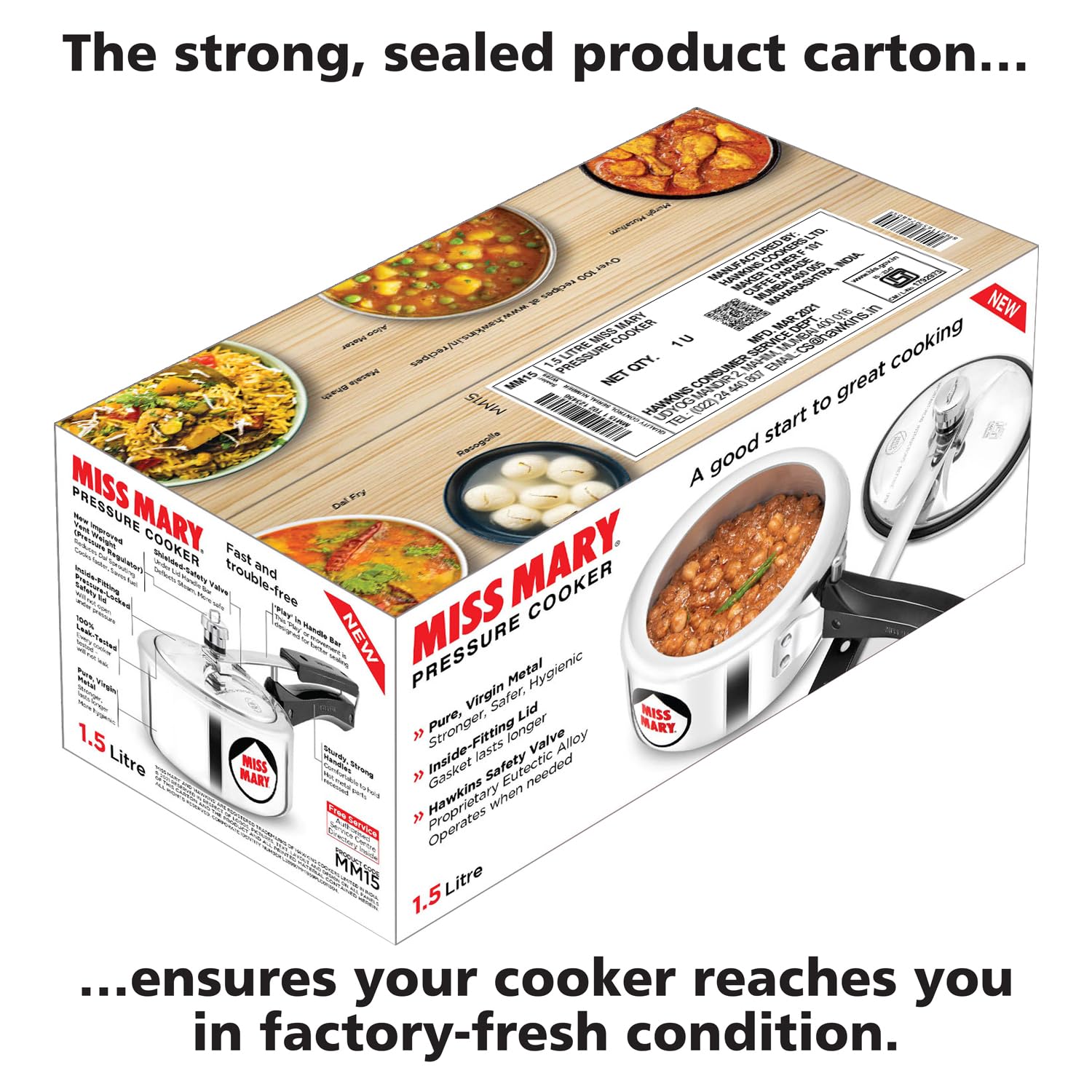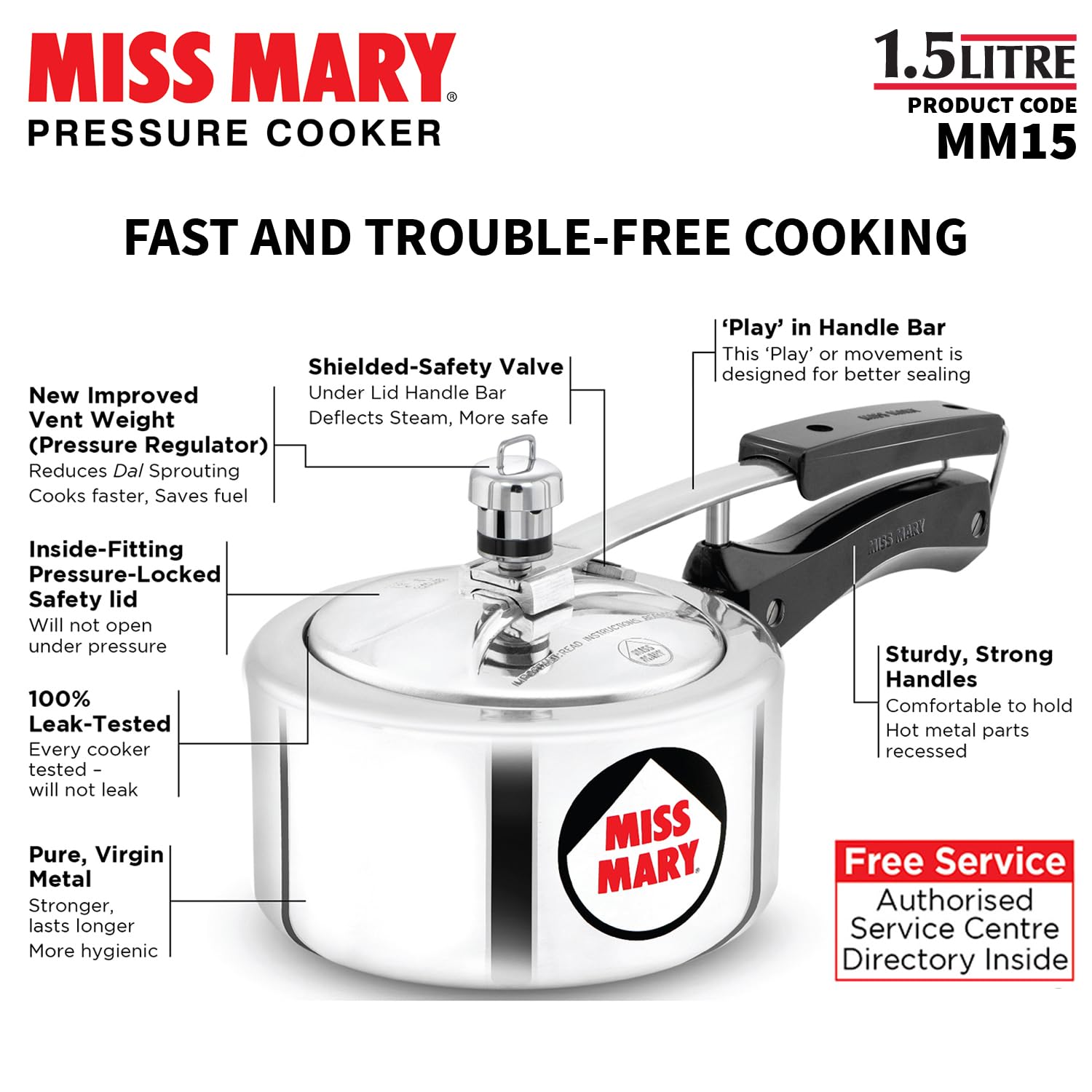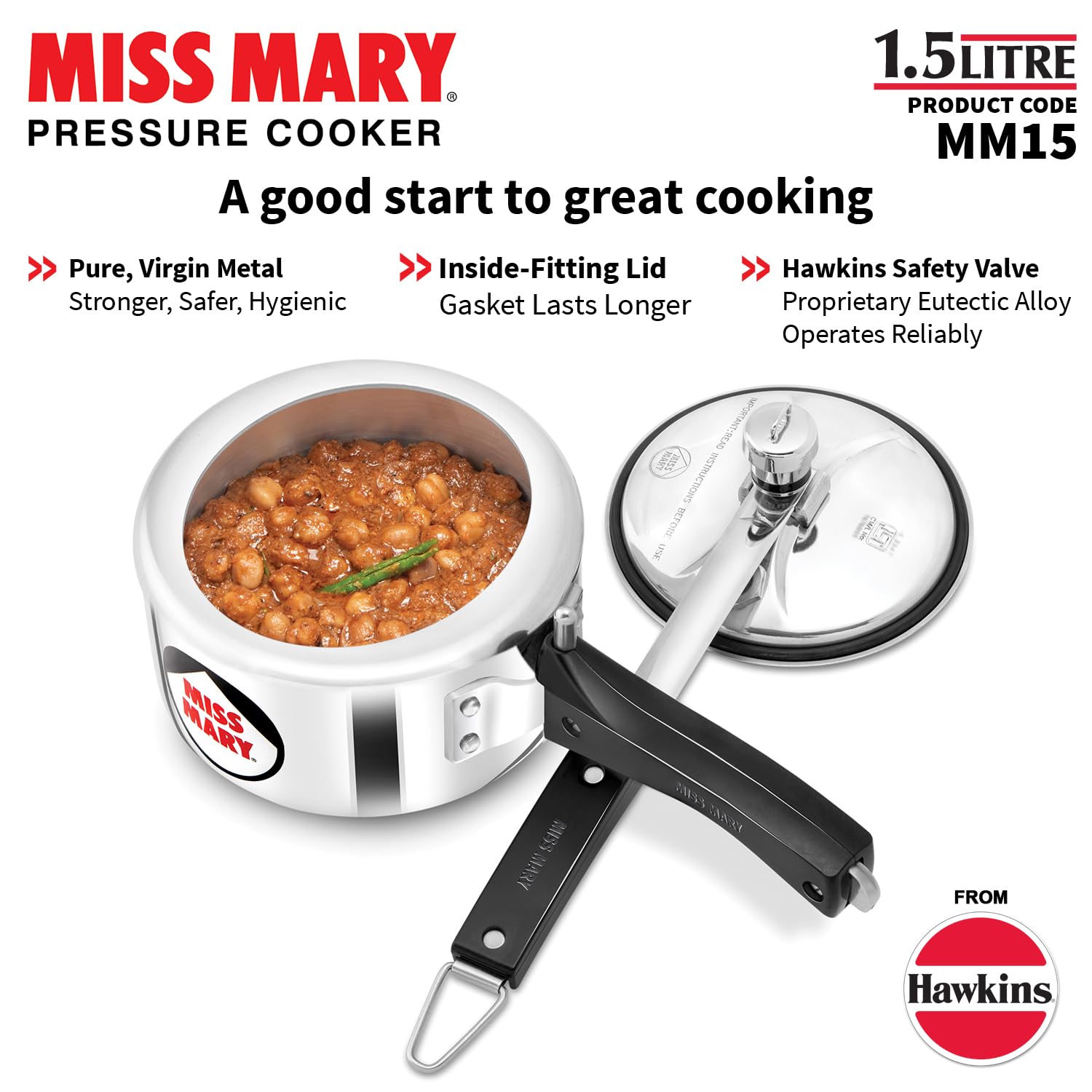 Hawkins 1.5 Litre Miss Mary Pressure Cooker, Small Inner Lid Baby Cooker, Silver (MM15)
