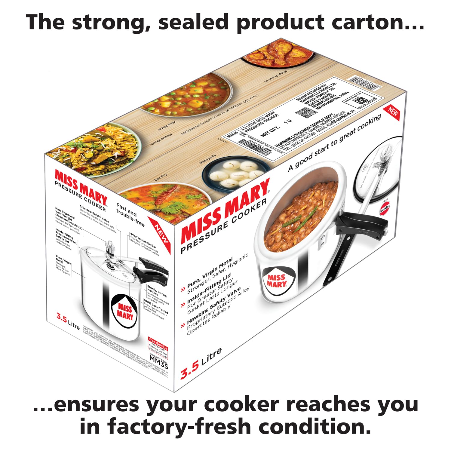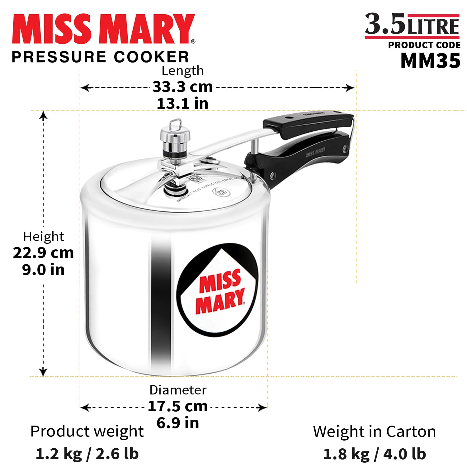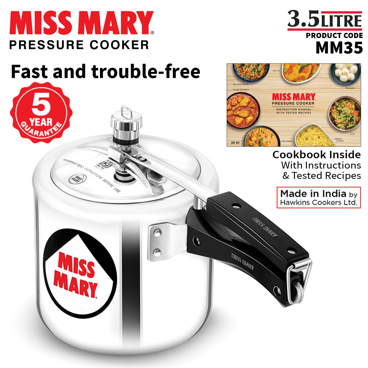 Hawkins 3.5 Litre Miss Mary Pressure Cooker, Inner Lid Cooker, Silver (MM35)