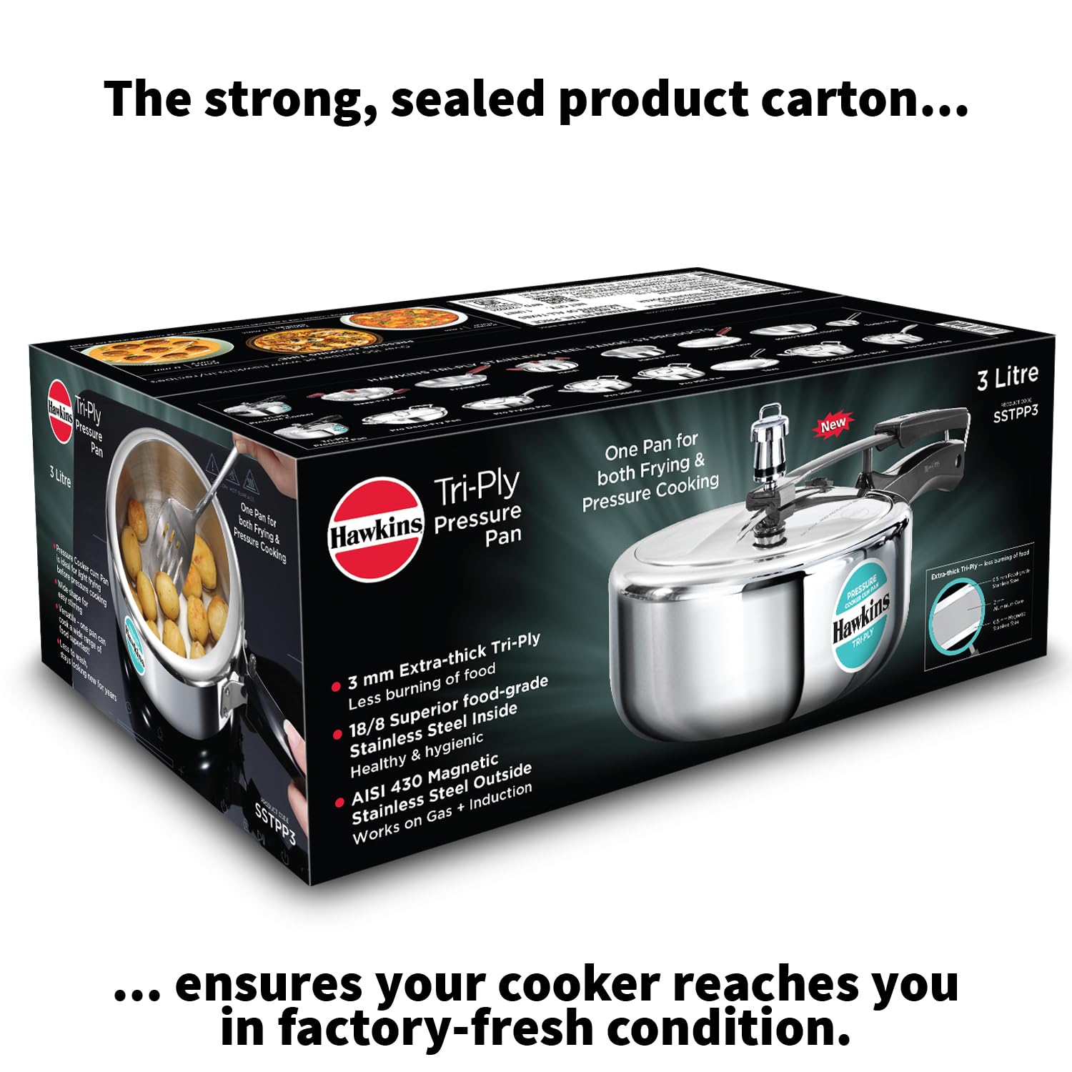 Hawkins 3 Litre Tri-Ply Pressure Cooker cum Pan, Triply Stainless Steel Inner Lid Cooker, Pan, Silver (SSTPP3)