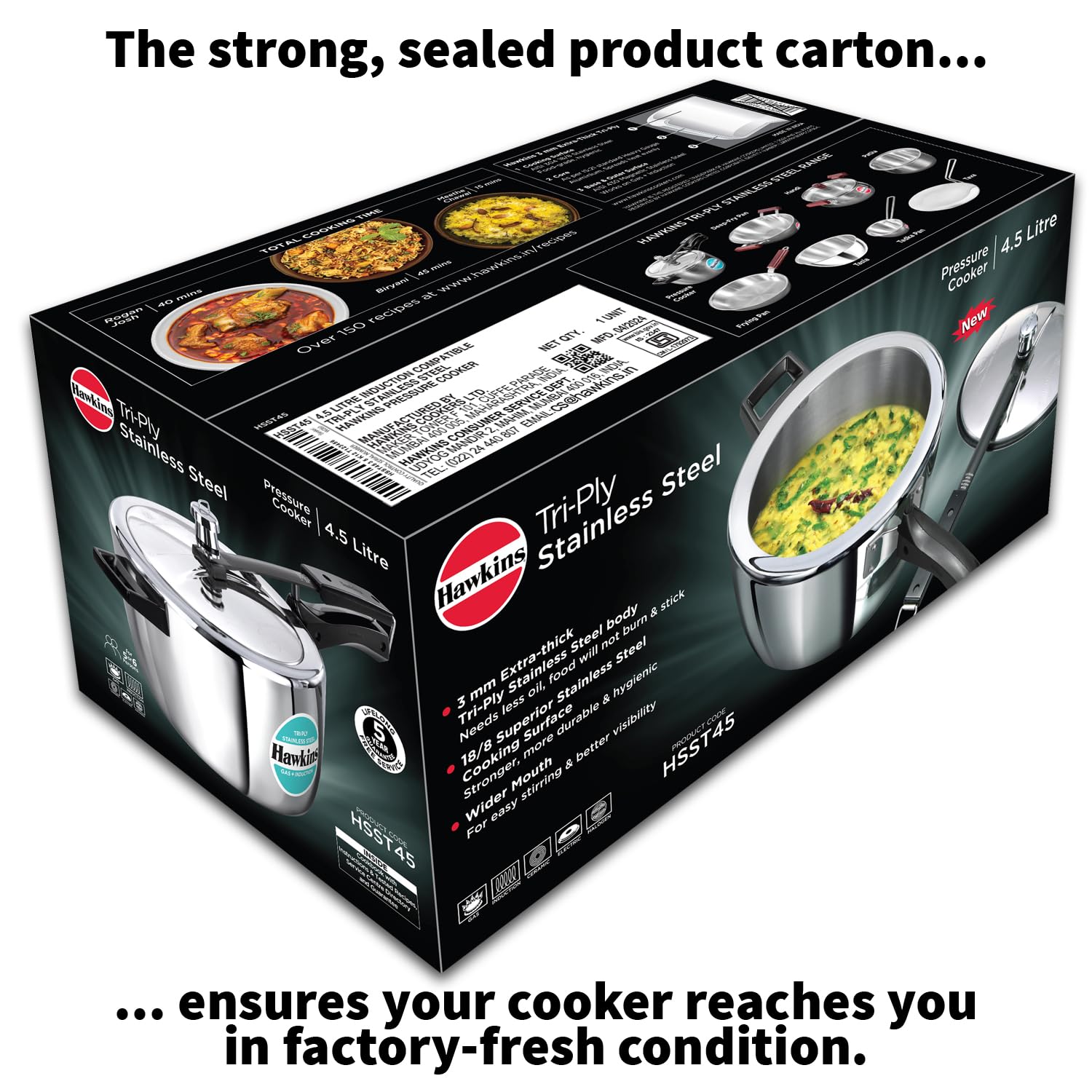 Hawkins 4.5 Litre Triply Stainless Steel Pressure Cooker, Inner Lid Cooker, Silver (HSST45)