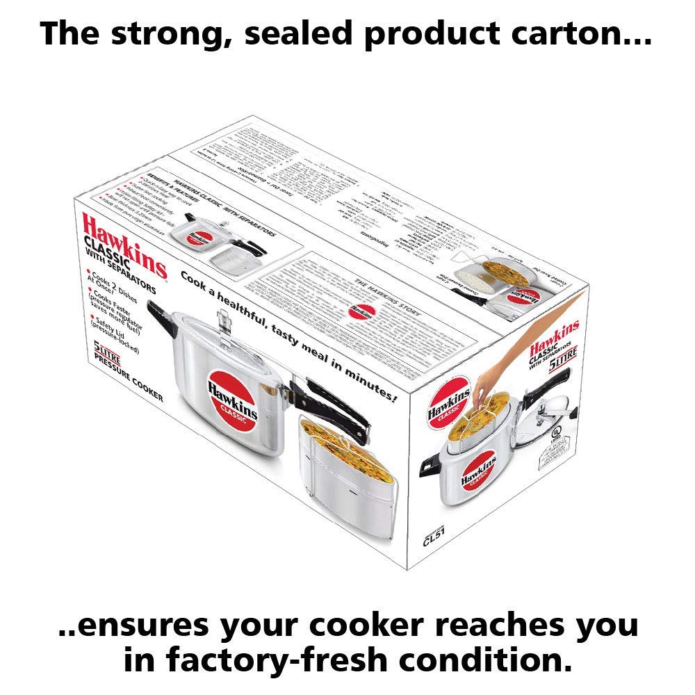 Hawkins Aluminium 5 Litre Classic Pressure Cooker With Pots,Inner Lid Cooker With Separator Set,Silver(Cl51)
