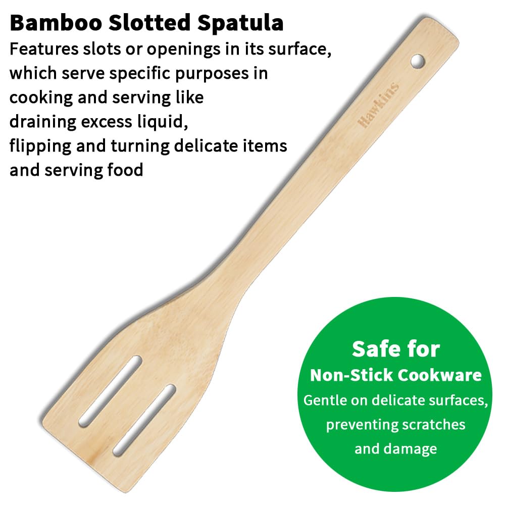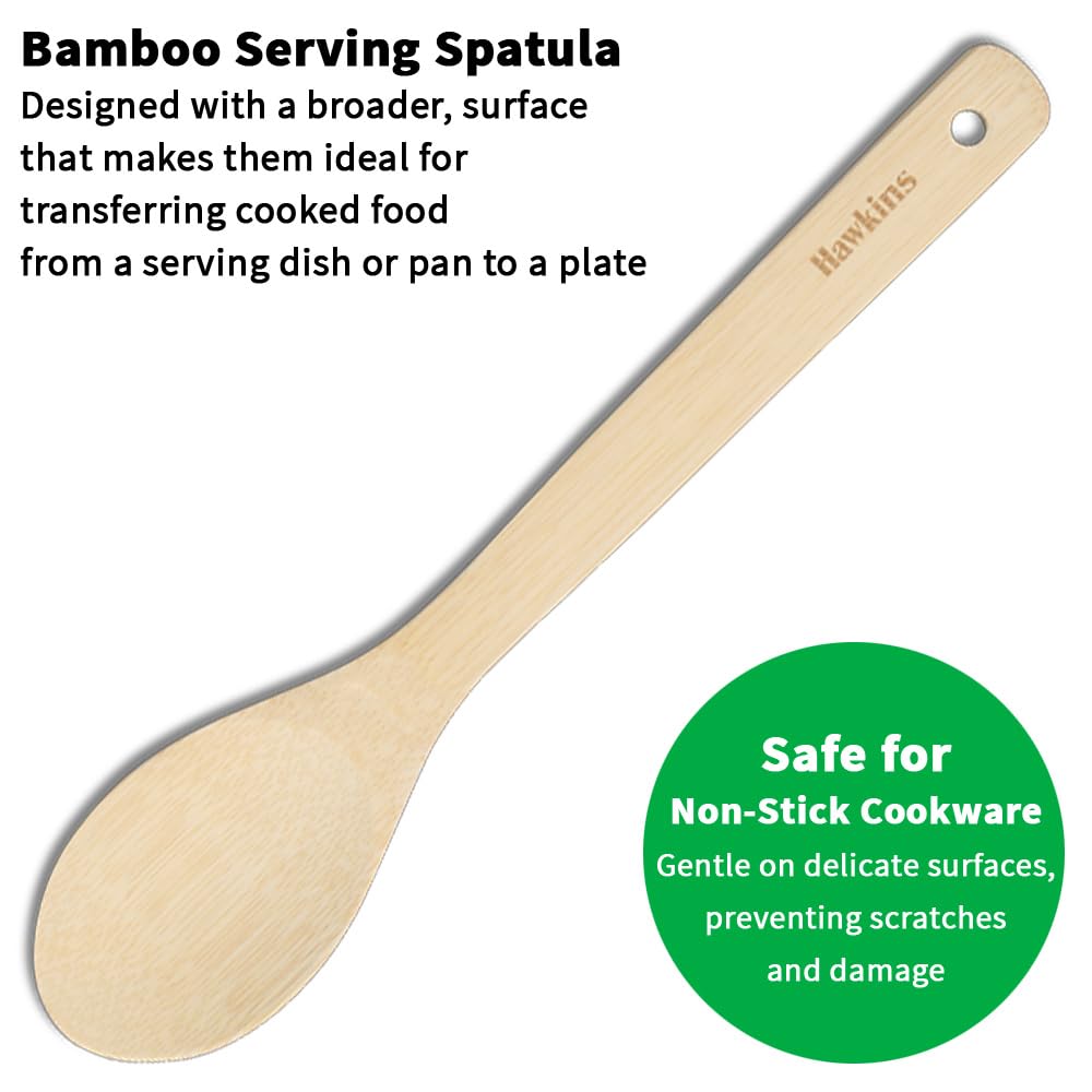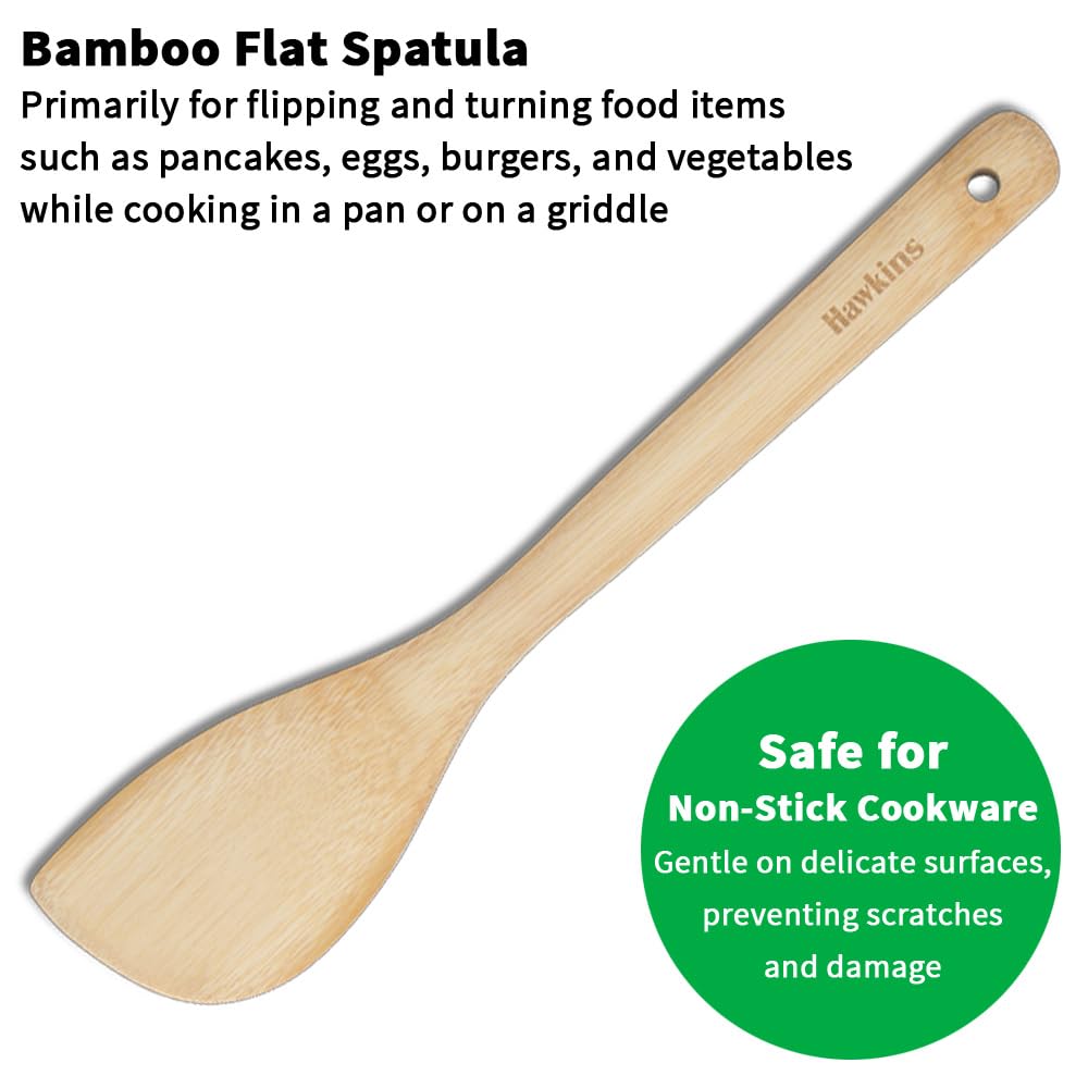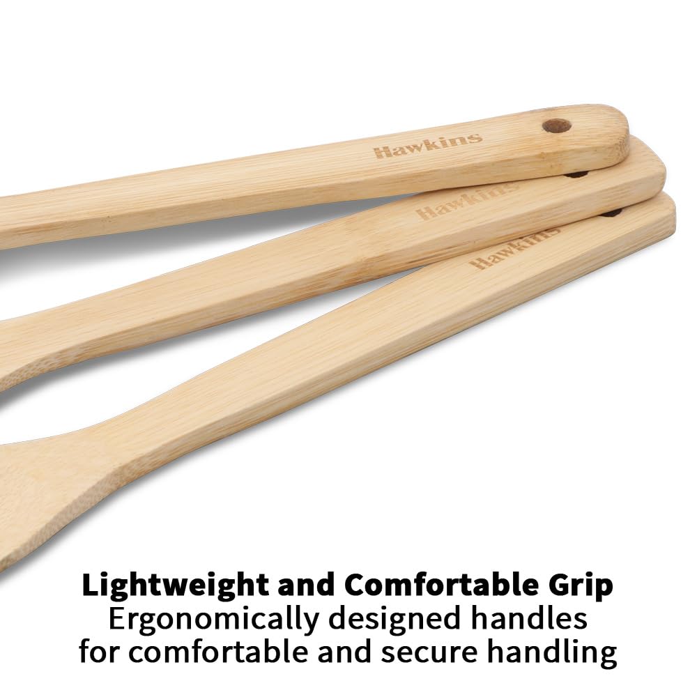 Hawkins Bamboo Spatula Set of 3, Natural Handmade Bamboo Spatulas, Kitchen Tools, Ladles, Turners, Flippers, Scrappers, Servers for Nonstick Cookware (BSPTL3)