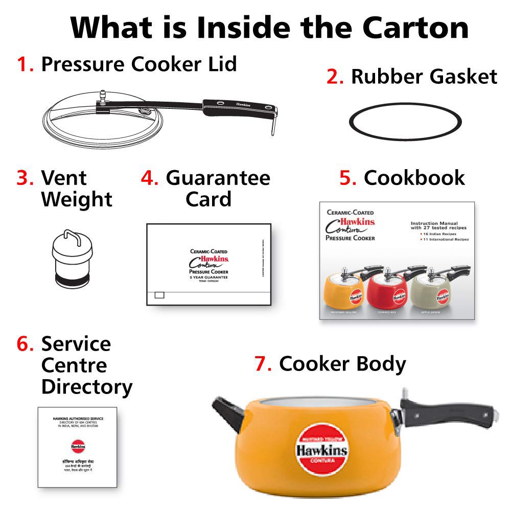 Hawkins Ceramic- Coated Contura 5L Mustard Yellow Aluminium Inner Lid Pressure Cooker
