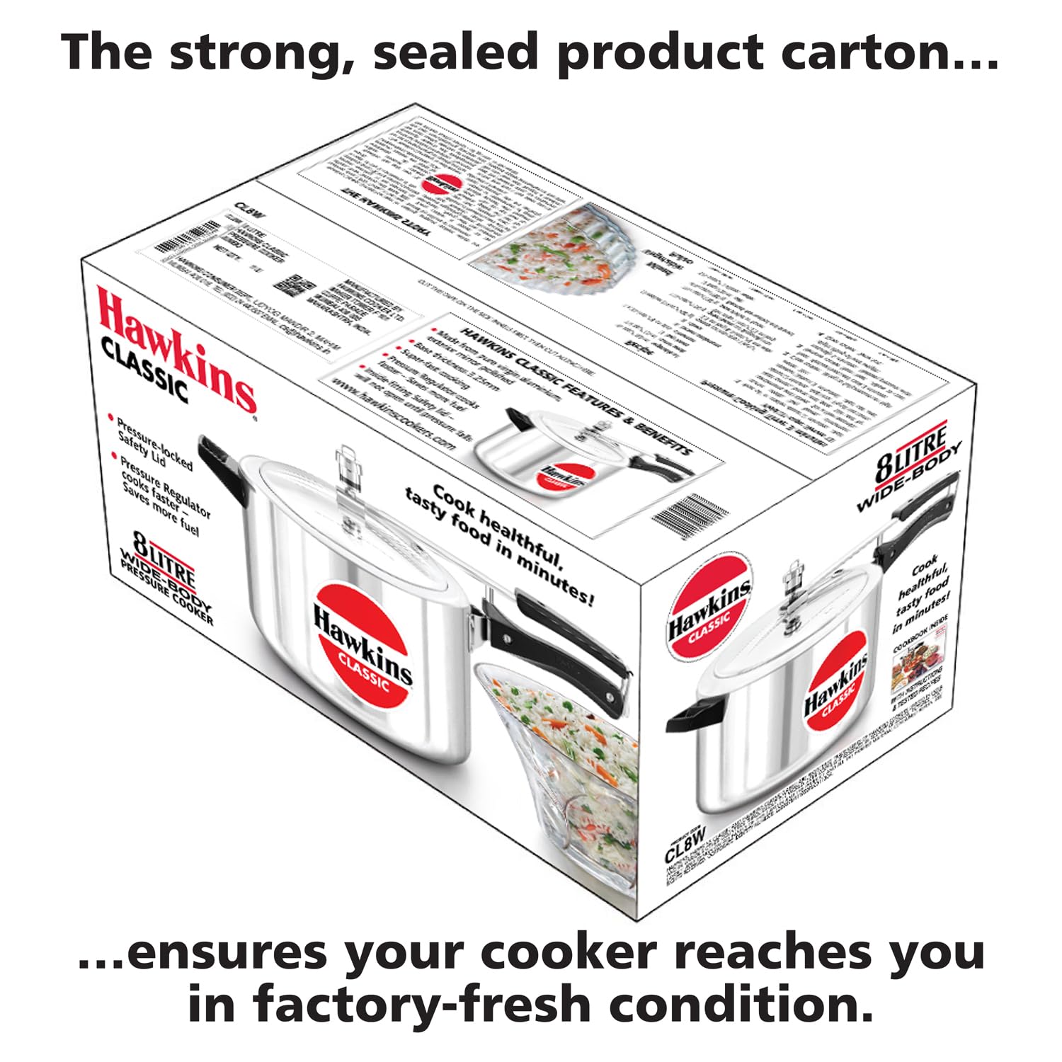 Hawkins Classic 8 Litre Aluminium Inner Lid Pressure Cooker, Wide Design Pan Cooker, Big Cooker, Silver (CL8W)