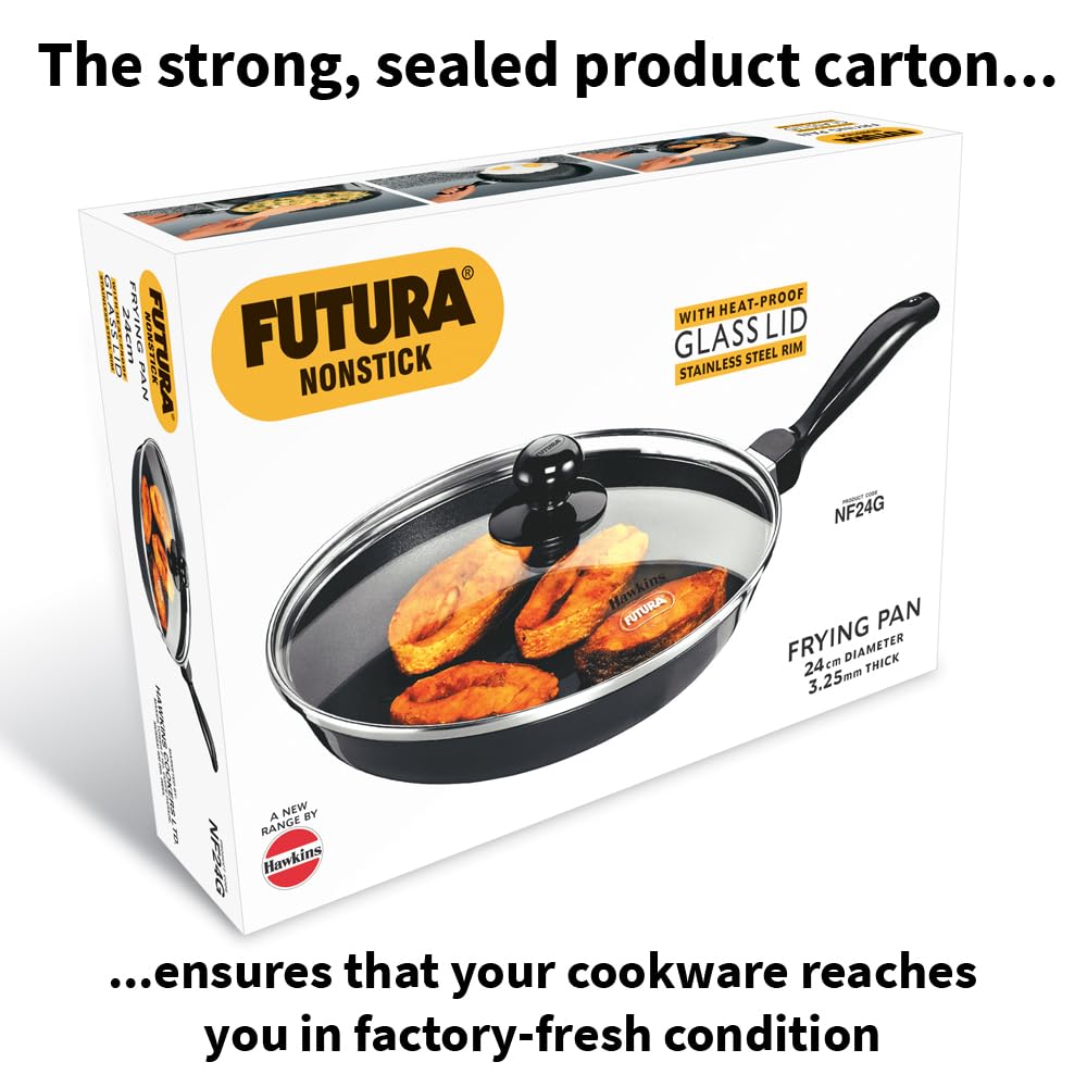 Hawkins Futura 24 cm Frying Pan, Non Stick Fry Pan with Glass Lid, Frypan, Black (NF24G