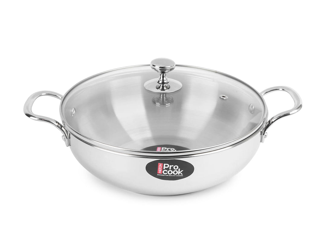 Kadhai with Glass Lid Stainless Steel Sandwich Bottom (Milton Procook)