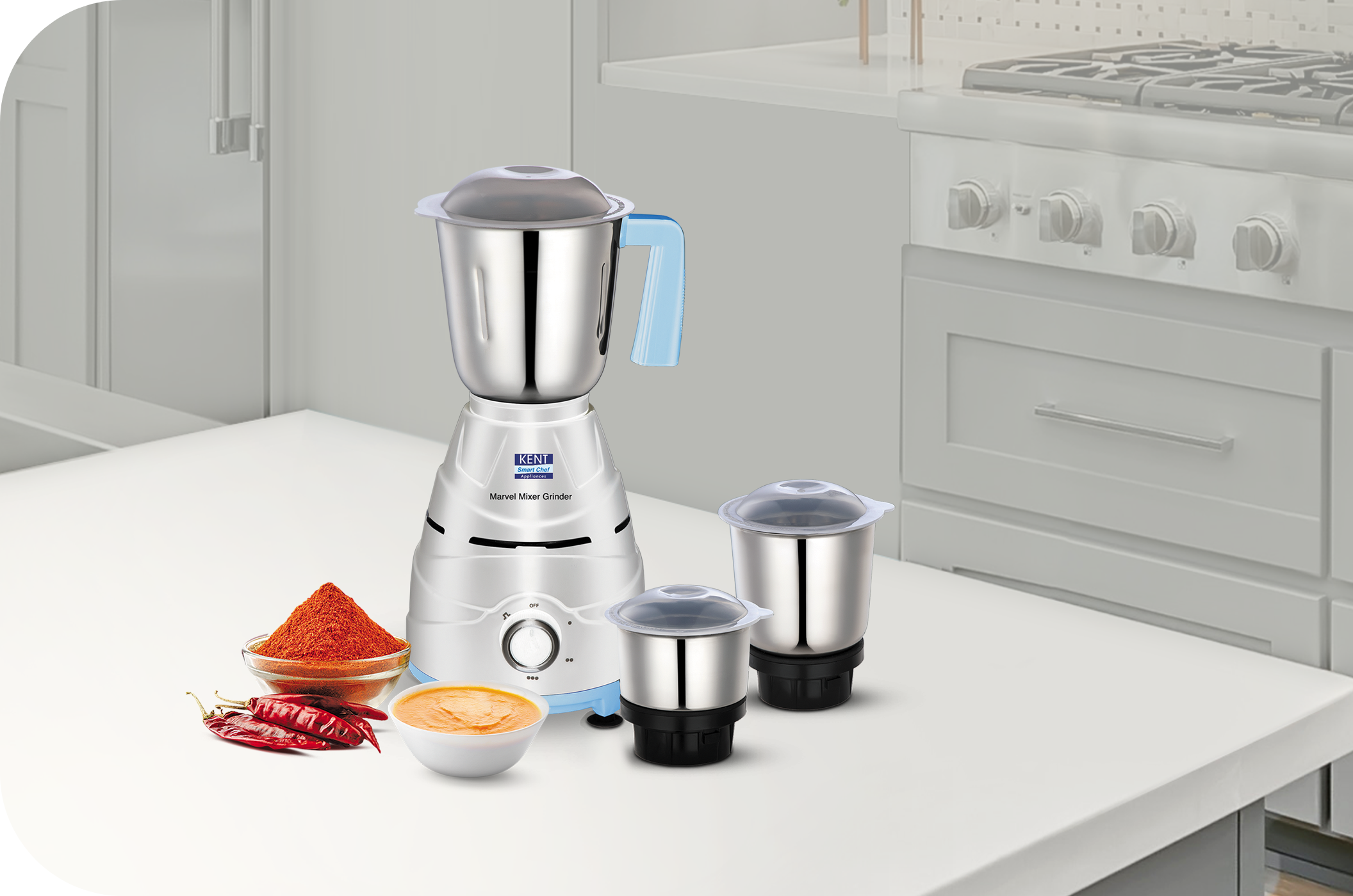 Descriptions :- Kitchen comfort is when you can do different food preparations without any hassle. KENT Marvel Mixer Grinder is a new-age mixer-cum-blender that works like magic and prepare various dishes with great ease. The 550W mixer grinder is designed with 3 high-quality SS jars for blending, mixing, and grinding with absolute perfection and smoothness. The jars have sharp SS blades for quick results and spill-proof lids for leak-free grinding/ blending. No matter whether you want to blend cold coffee, grind spices to fine powder, or prepare sumptuous chutneys, the mixer grinder can do it all with no difficulty.