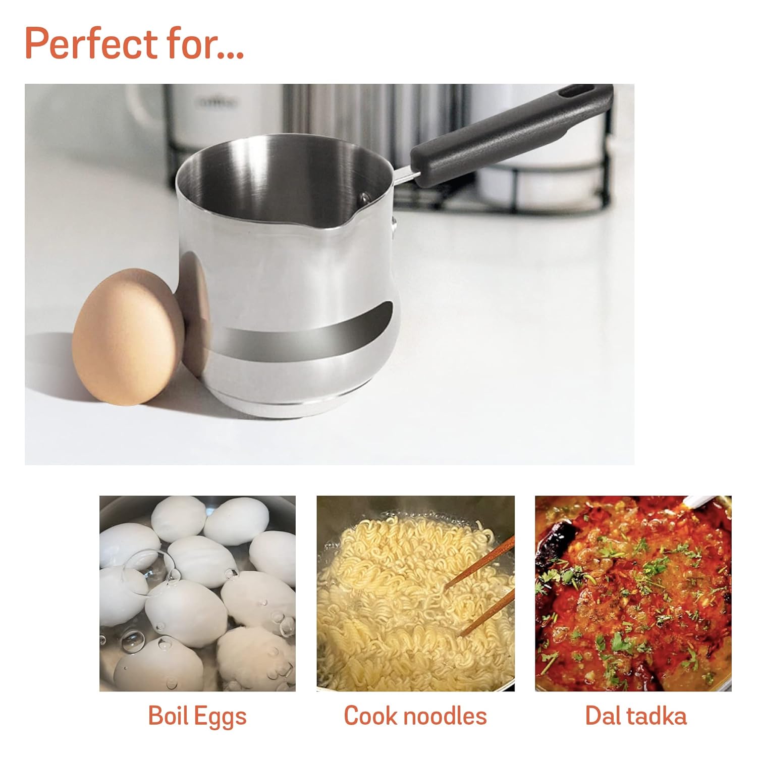 - 🥛 Kitchen Workhorse: This mini pot is truly multipurpose. Perfect to warm milk, prepare soup, boil eggs, cook noodles, melt butter, rustle up tadka for daal, and much more. Its compact size makes it ideal to prepare baby food, reheat leftovers, or prepare food for a single serving