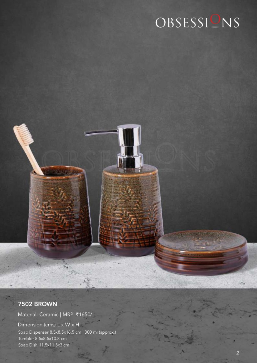 OB Bath Set 3Pcs Earth 7502 Brown