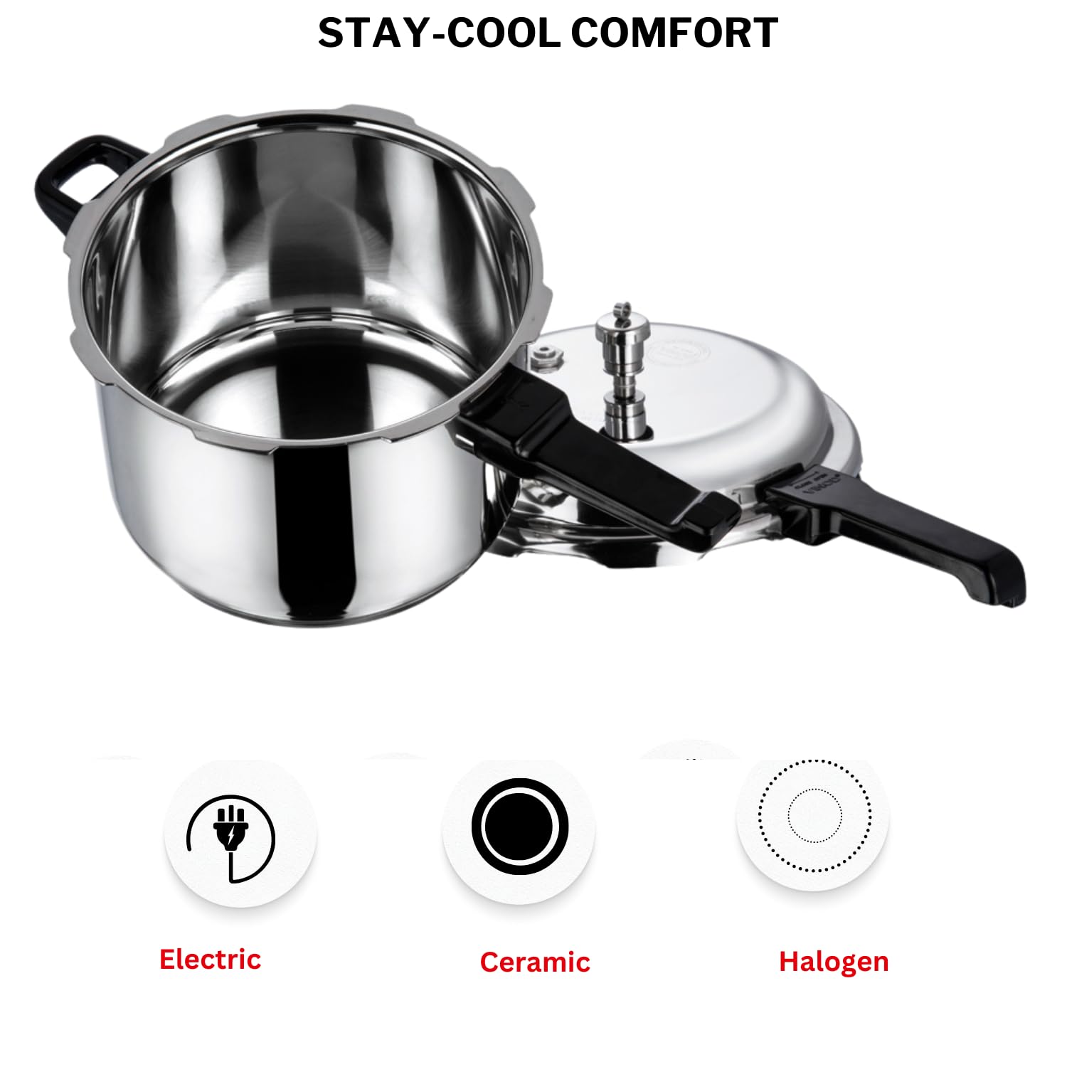 Vinod 18/8 Stainless Steel Pressure Cooker Outer Lid 10 Litre | Unique Sandwich Bottom Cooker | Induction and Gas Base | ISI and CE certified | 2 Years Warranty